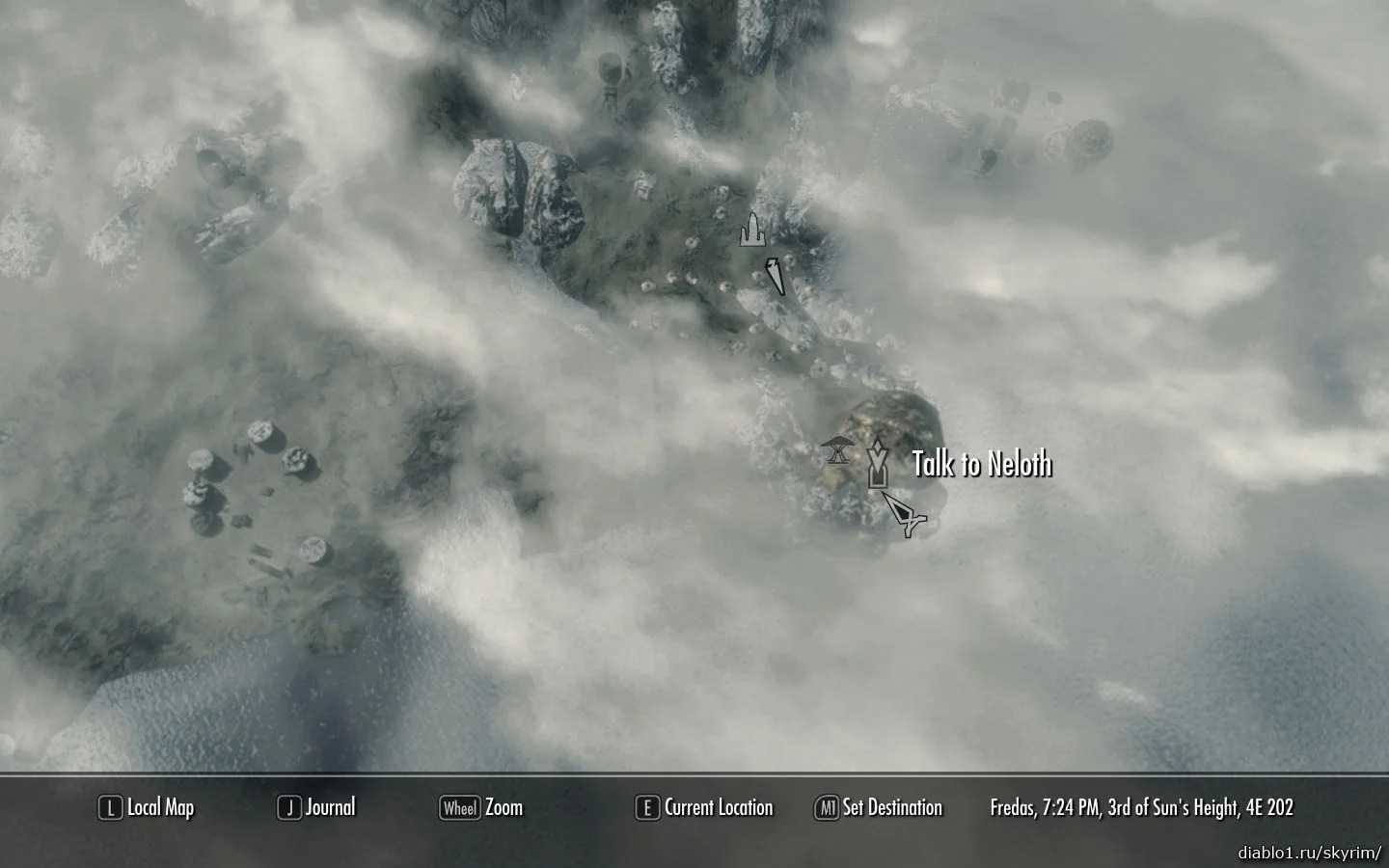 На месте к нам подойдет Нелот (Neloth) и начнет разговор, после разговора маркер задания укажет на центр острова, к Храму Мирака (Temple of Miraak), отправляемся туда: