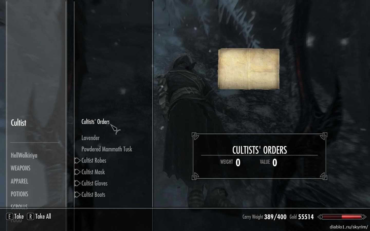 Возьмите у него вторую часть дневника и ключ Костяной драконий коготь. Прочтя дневник, вы узнаете, что он собирался найти три части могущественного амулета и вам нужно сделать то же самое во время прохождения квеста Запретная легенда в Skyrim.