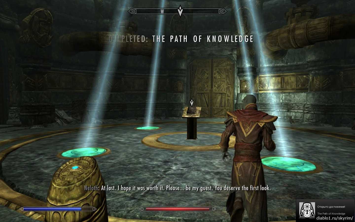 Устанавливаем на все стойки двемерские кубы и идем дальше. Находим рычаг, который телепортирует вас наверх, и возвращаемся к началу. Останется только активировать последнюю стойку, и Черная Книга станет доступна: