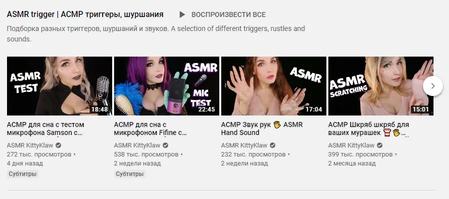 Складывание полотенец, набирание текста на клавиатуре или резка каких-то продуктов – есть триггеры для людей, которым нравится слушать определенный процесс.