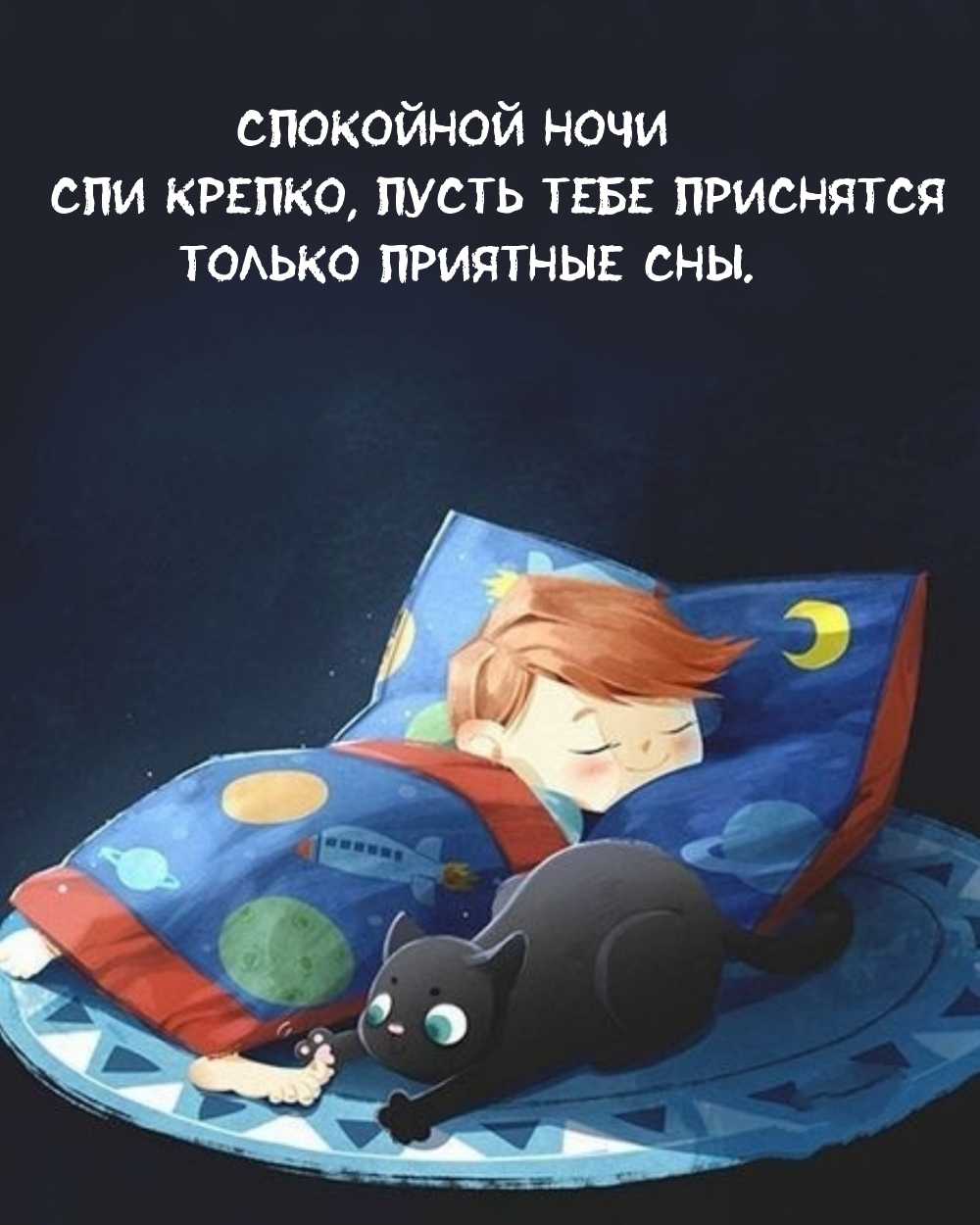 Спокойной ночи, сладко спи,Своими снами наслаждайсяИ тихо, мирно так сопи,И до утра не просыпайся!