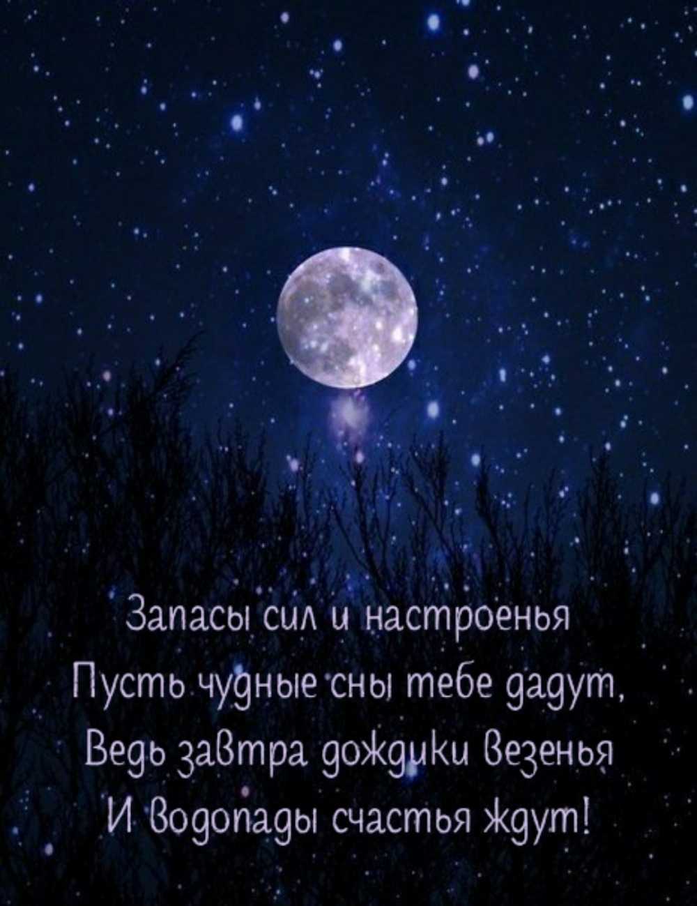 Желаю спокойной, тихой ночи, которая перенесёт тебя в волшебную страну иллюзий и грёз, невероятных и захватывающих историй, славных и чудесных сказок, радостных и позитивных событий.