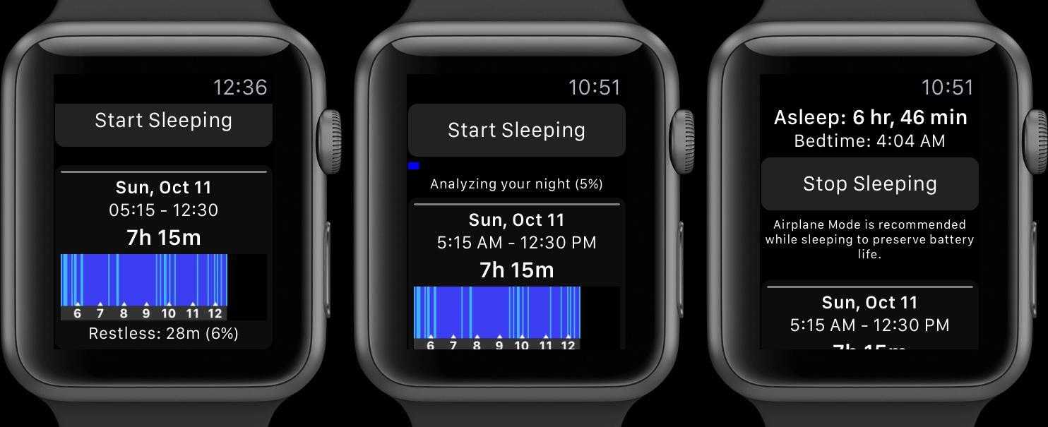 Чтобы включить анализ сна Apple Watch, придется установить приложение Sleep++ из фирменного магазина App Store. Оно работает крайне просто: перед тем, как уснуть, достаточно открыть и включить трекер по кнопке «Start sleeping». Всё, программа начала свою работу и теперь анализирует организм.