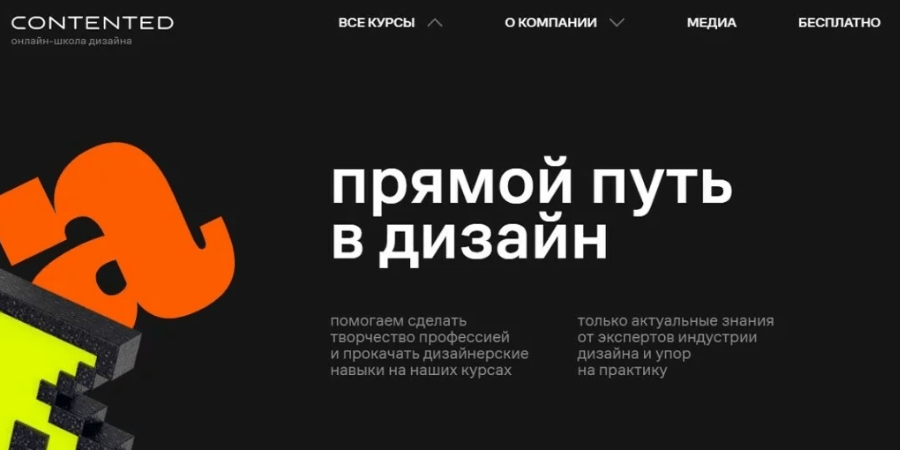 Contented — популярная онлайн-школа дизайна с 20 программами обучения профессиям на борту, а также с целой кучей мини-курсов по работе со специальным софтом.