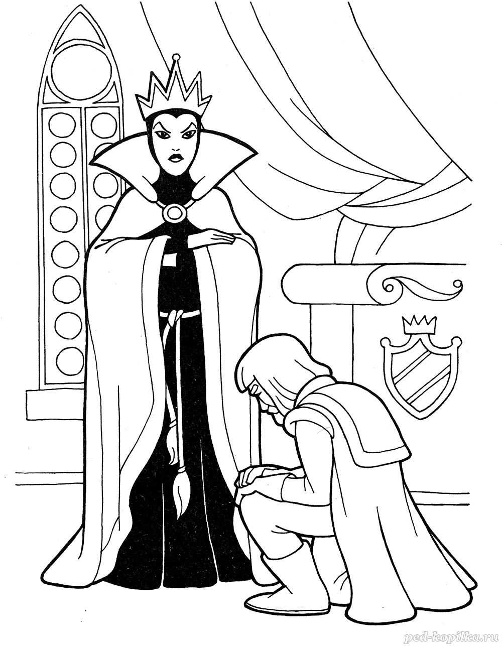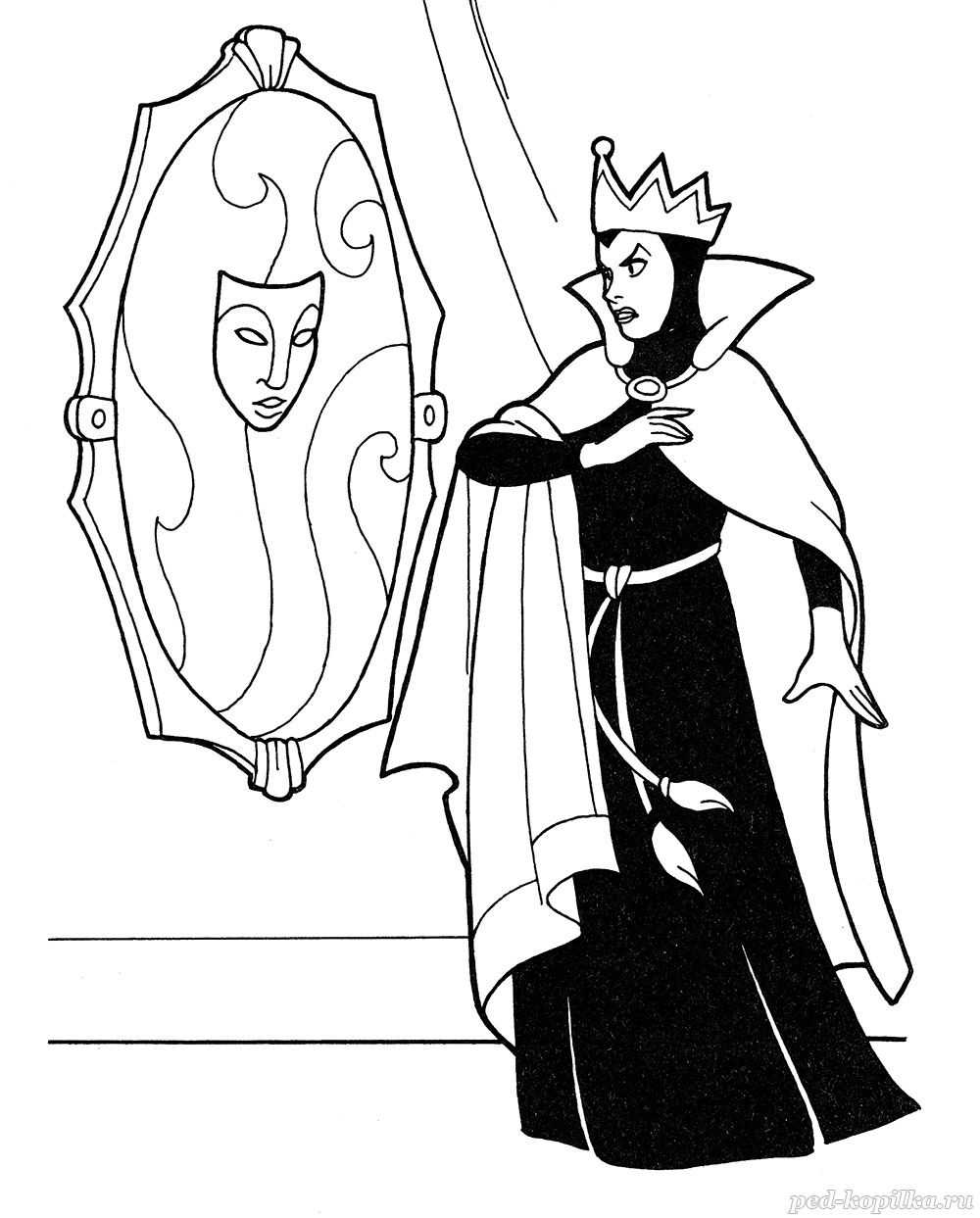 Но на праздник была приглашена и королева, мачеха Белоснежки. Нарядилась она в красивое платье, подошла к зеркалу и сказала: