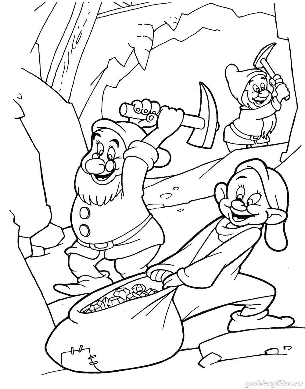 А жили в лесном домике семь гномов. Все гномы занимаются добычей и сбережением подземных сокровищ. Вот и эти семь гномов с самого утра до поздней ночи трудились в шахте, добывая золото и драгоценные камни. Только на вечерней заре отправлялись они домой.