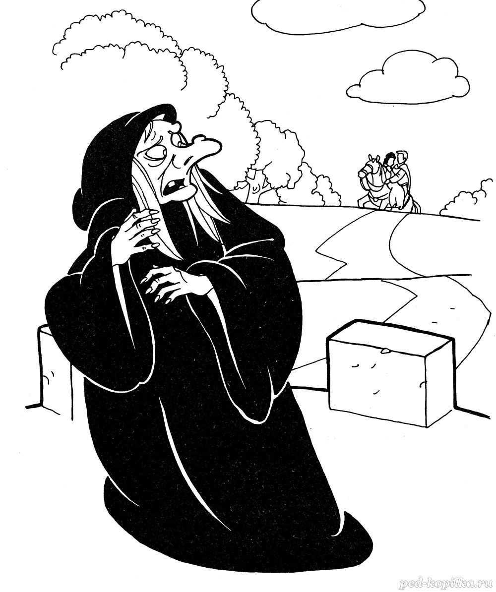 И вымолвила тогда злая женщина свое проклятье, и стало ей так страшно, так страшно, что не знала она, как ей с собой справиться. Сначала она решила совсем не идти на свадьбу, но не было ей покоя — хотелось ей пойти и посмотреть на молодую королеву. И вошла она во дворец, и узнала Белоснежку, и от страха и ужаса как стояла, так на месте и застыла.