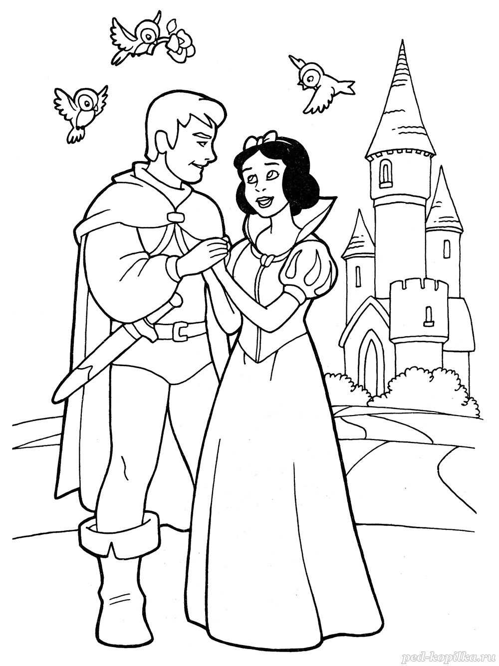 В конце сказки, Белоснежка была спасена принцем, который влюбился в нее с первого взгляда. Он поцеловал ее и разбудил Белоснежку от смертельного сна, вызванного яблоком с ядом, которое она получила от мачехи.