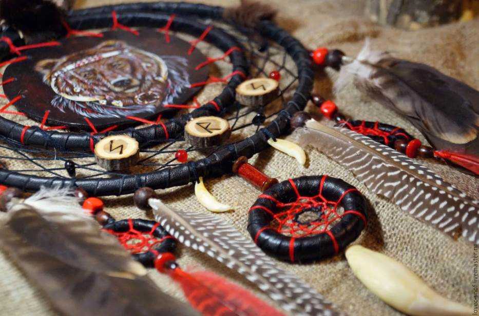 Считается, что Кытгьем ловит всех духов сновидений: и плохих, и хороших. Он опускает их по шнурку к спящему для связи другого мира с сознанием. Так шаман видит будущее и прошлое, но видения эти предполагают борьбу со злом ФОТО: cs1.livemaster.ru