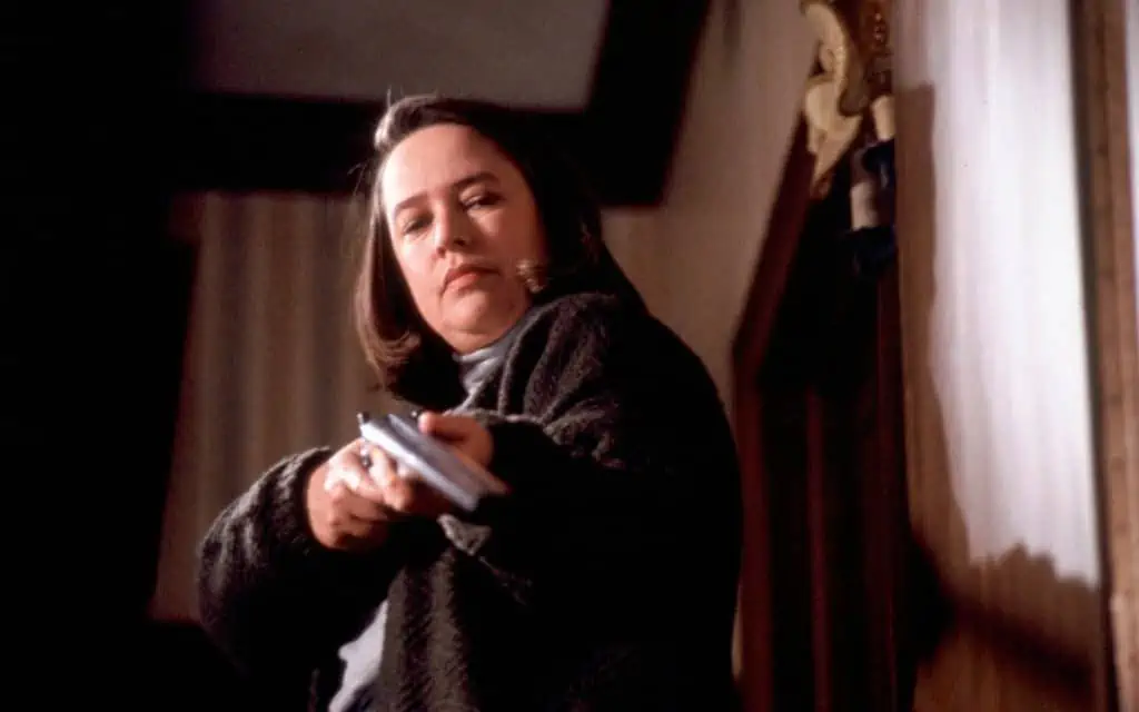 Throughout the ordeal, Annie breaks both of Paul’s legs, kills a Sheriff investigating Paul’s disappearance and shoots Paul with a revolver. All before getting smashed in the head with a typewriter and then being bashed by a metal doorstop.