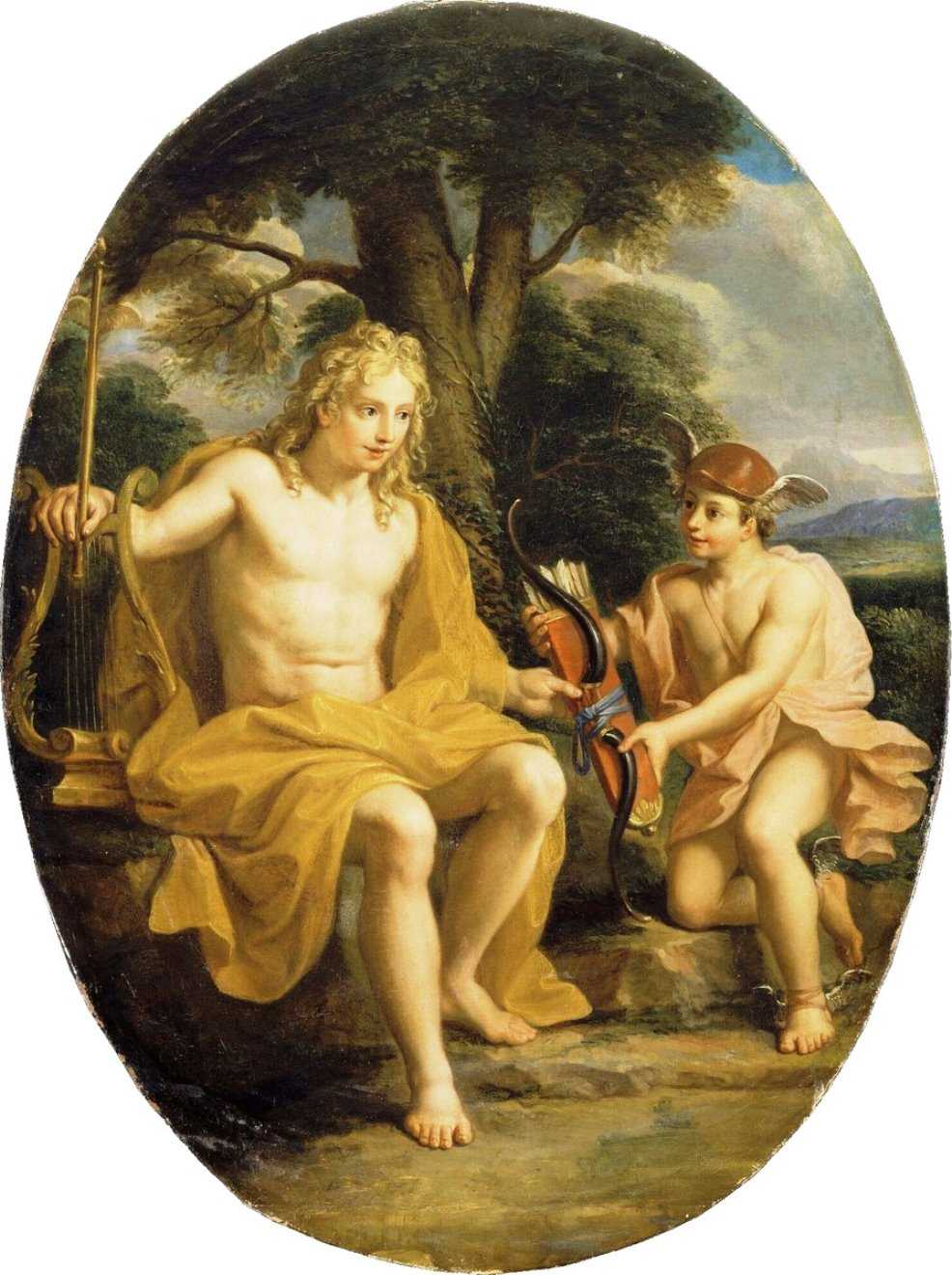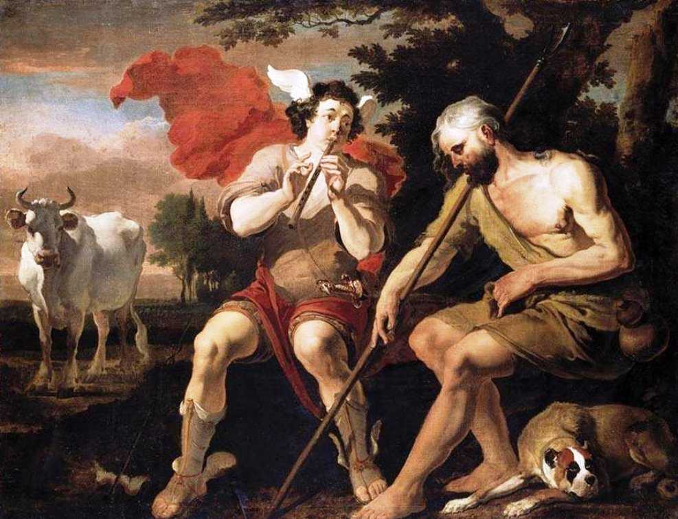Выиграл: Он сказал, что Гермес арендованное на священных пастбищах горы Олимп стадо божественного скота бога Аполлон.
