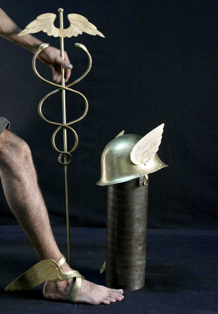 жезл вестников: Гермес Он носил с собой своего рода золотую трость, называемую «керикейон», который был жезлом глашатаев (вестников), идентифицирующим его в роли посланника богов.