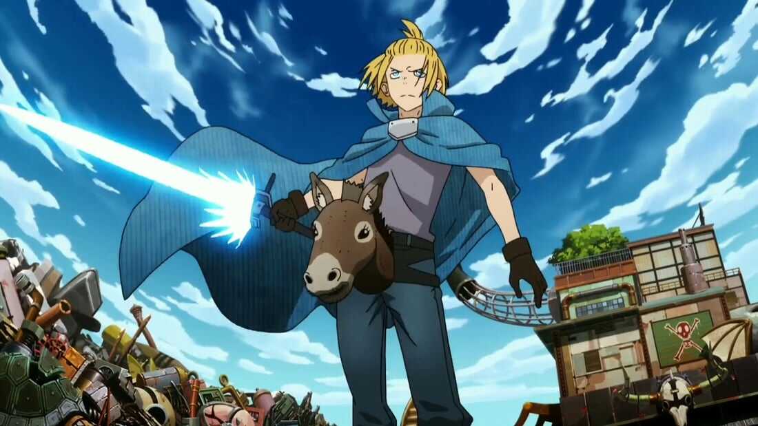 Despite not being able to break through the giant’s body, Shinra is able to forge an Adolla Link and see into Nataku’s mind. Shinra tries to encourage the boy to stop being afraid. Nataku’s fragile mental state interprets this as an instruction to unleash his full power on the city, releasing a colossal blast of radioactive energy. The city is saved from destruction by Charon reflecting the blast into the sky and out of the atmosphere.