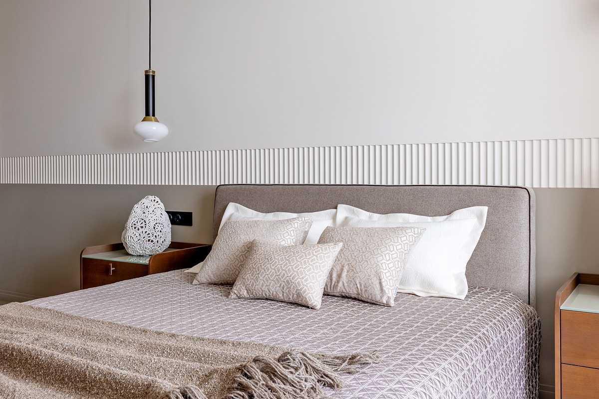 Розетки Donel R98, ГЭС; тумба прикроватная, собственное производство ICON Home Concept; вазы Александра Микляева, Ural Concept Store; кровать, Poetto; подушки, постельное белье, покрывало, плед — всё Dartek