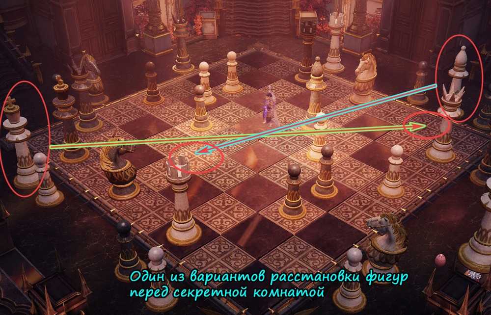 Чтобы попасть в секретную комнату, нужно выполнить особые условия и получить два бафа (каждый действует 1 час). После этого активировать колонны с бабочками. И снова решить шахматную головоломку.
