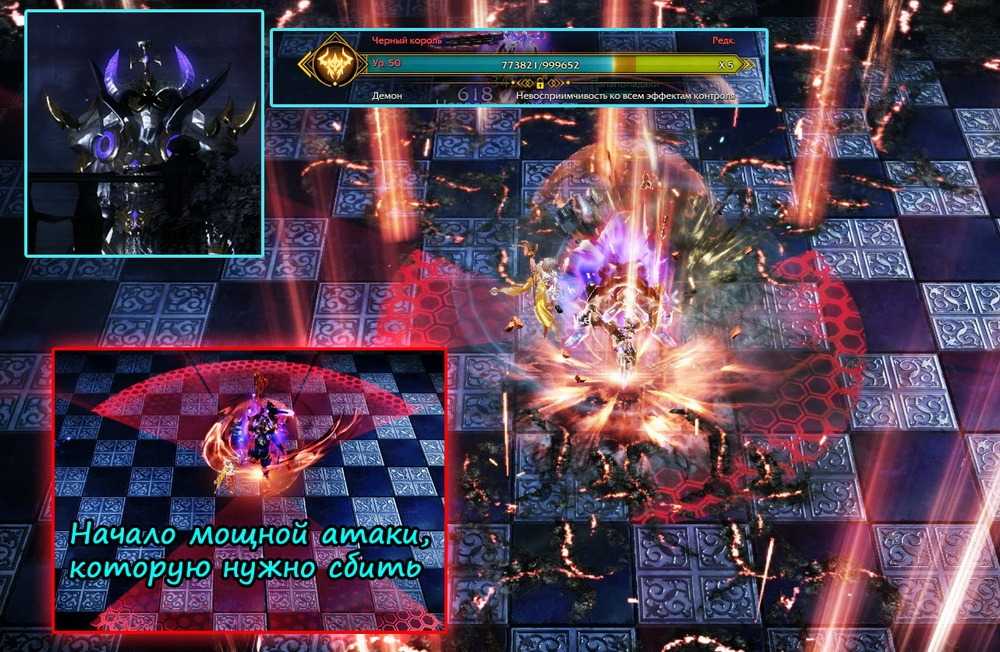 Особенность короля — его ульта. Периодически он встает в центр и начинает заряжаться. В это время нужно максимально быстро сбить полоску под ним. В противном случае он нанесет