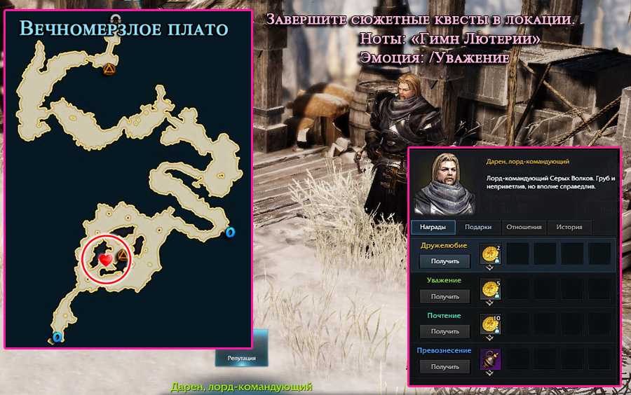 Несет службу в Вечномерзлом плато, и для дружбы с этим суровым воином нужно завершить сюжетную миссию в этой локации «Время прощаний».