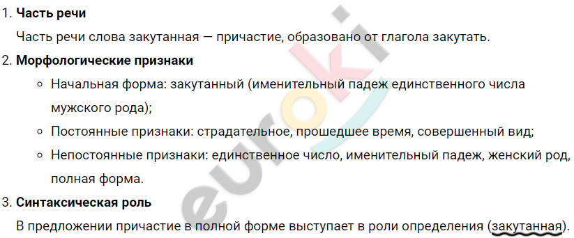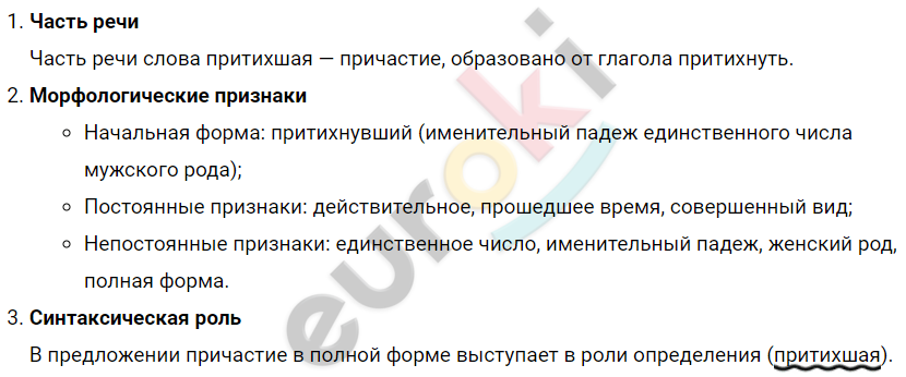 2. Морфологический разбор: закутанная, притихшая.