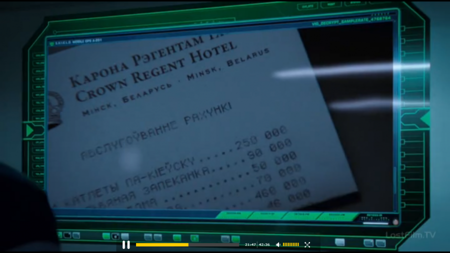 В одной из сцен можно увидеть чек, который помимо языка оперирует еще и ценами. И хотя они, в общем-то, заоблачные (но если учесть, что чек этот из какого-то минского отеля, то все реально), выглядят при этом довольно правдоподобно. Хотя бы потому, что суммы указаны в рублях до деноминации (сезон вышел в 2013 году) и не вызывают желания закричать «Не верю!».