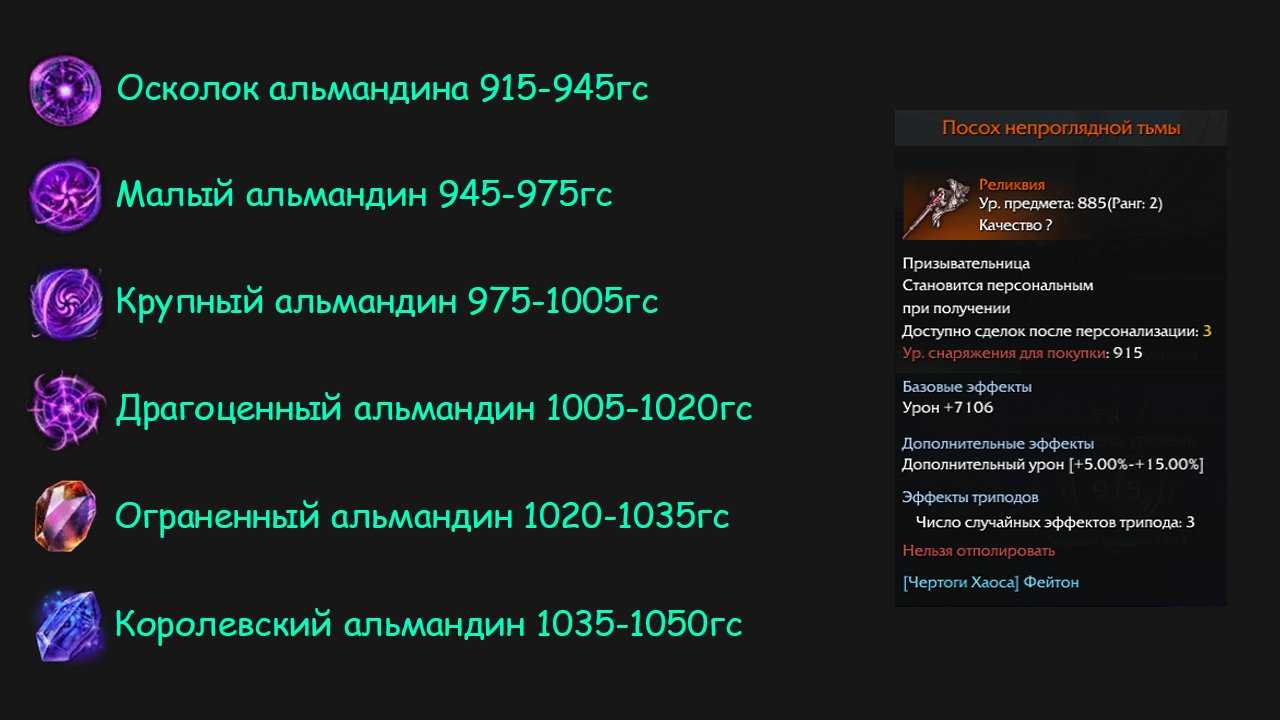 После переноса закаляем снаряжение до 9 уровня с помощью Осколка альмандина и получаем 945гс (8 уровень закалки).