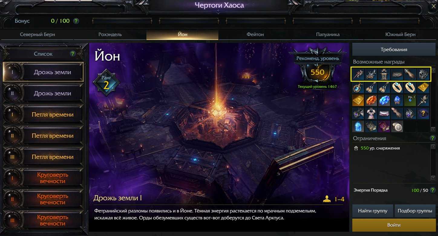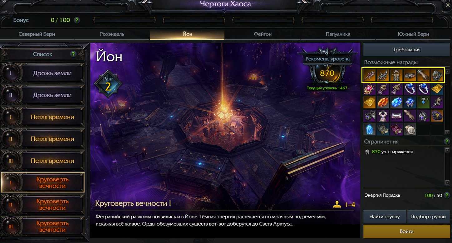Отправляемся в Чертоги Хаоса Йона «Круговерть вечности» на 1 этап и выбиваем оттуда все части Снаряжения магмовой кузни.