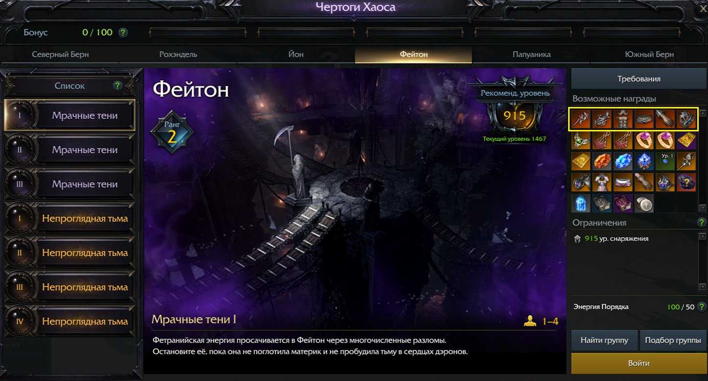 В Большом сундуке ветерана I будут альмандины для закалки Снаряжения непроглядной тьмы. Отправляемся в Чертоги Хаоса Фейтона «Мрачные тени» и выбиваем оттуда все части Снаряжения непроглядной тьмы.