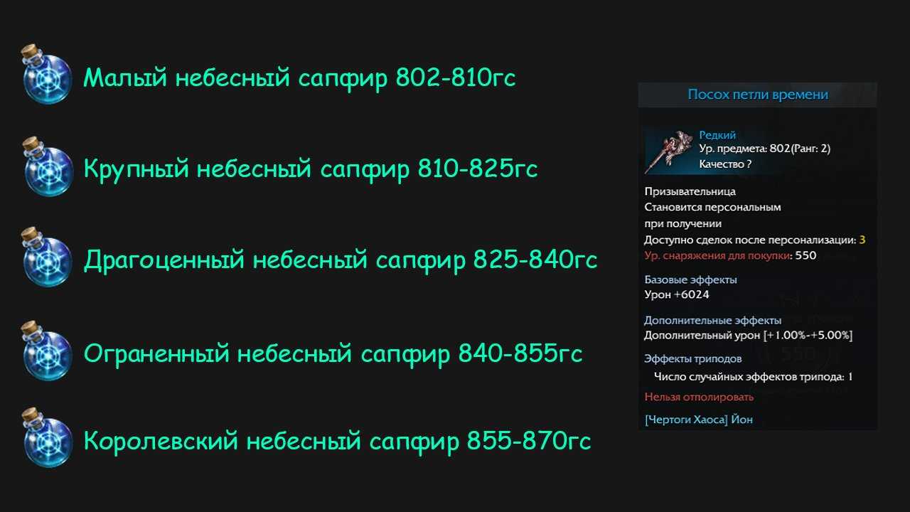 После переноса закаляем снаряжение до 6 уровня с помощью Малого небесного сапфира и получаем 810гс.