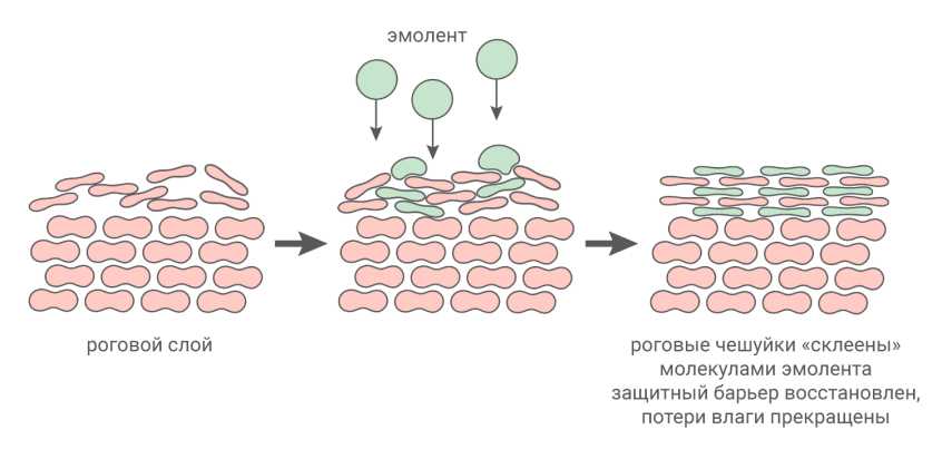 Основой терапии являются эмоленты — специальные вещества, поддерживающие адекватное состояние защитного кожного барьера. Такие средства должны использоваться постоянно, несколько раз в день, особенно после принятия ванны или душа, посещения бассейна, физических нагрузок.