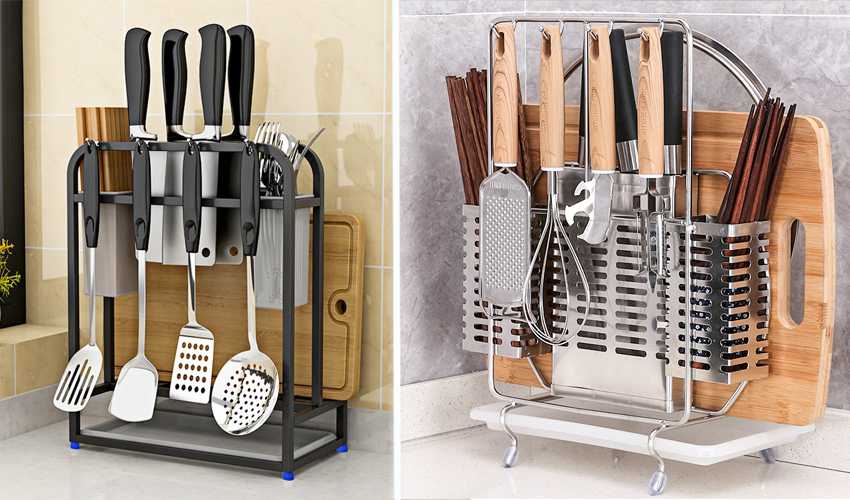 Контейнер для хранения столовых приборов можно купить в готовом виде или сделать по своим чертежам. В сети есть множество вариантов таких конструкций. Самый простой – использование пластиковых емкостей из – под воды или продуктов. Их обтягивают практичным материалом или покрывают водостойкой краской.