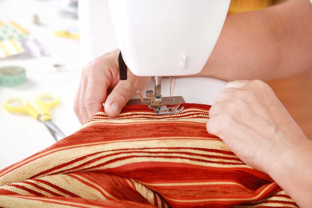 - Сшивать большие куски ткани, шторы или полотна