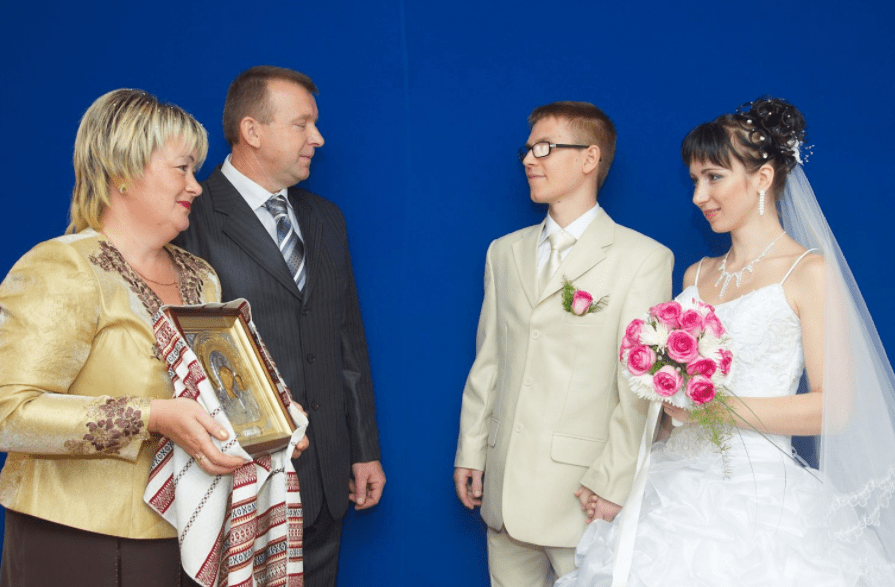 - Во втором родители, как жениха, так и невесты встречают молодоженов с двумя иконами.