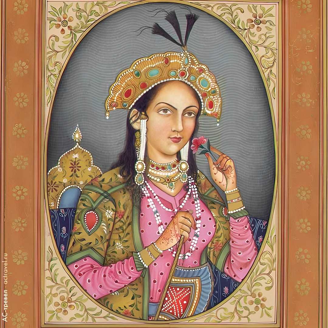 Любимая жена Шах-Джахана Мумтаз-Махал. Могольская живопись, XVII—XVIII в. Изображение в общественном достоянии