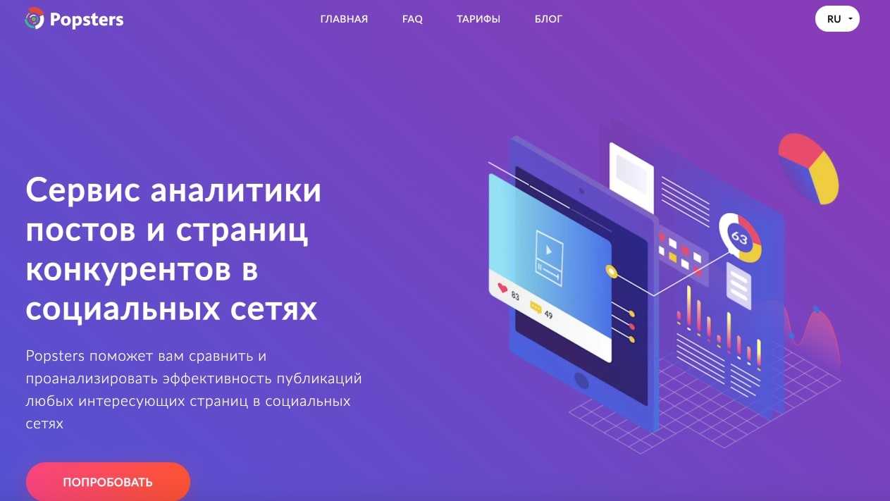 Сервис предоставляет возможность анализировать содержимое и предпочтения аудитории в профилях соцсетей, в том числе в Instagram. С его помощью можно собирать информацию о своём и чужих аккаунтах, получать данные об активности подписчиков, самых лучших временных периодах для публикования постов, вовлечённости аудитории Popsters способен проводить сортировку публикаций по лайкам и репостам.