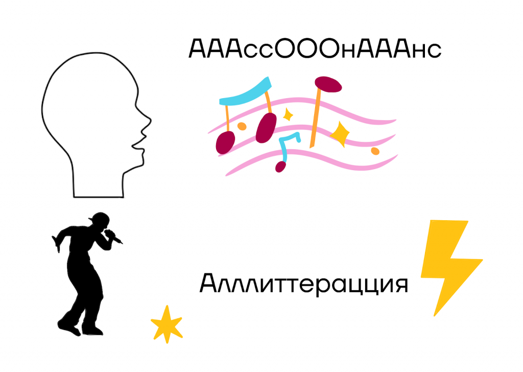 Чтобы запомнить понятие аллитерации, представим, что мы читаем реп. Слово «аллитерация» мы проговариваем быстро, с акцентом на согласные — так же, как это делает репер. Тогда мы точно не забудем, что аллитерация — это повторение согласных звуков.